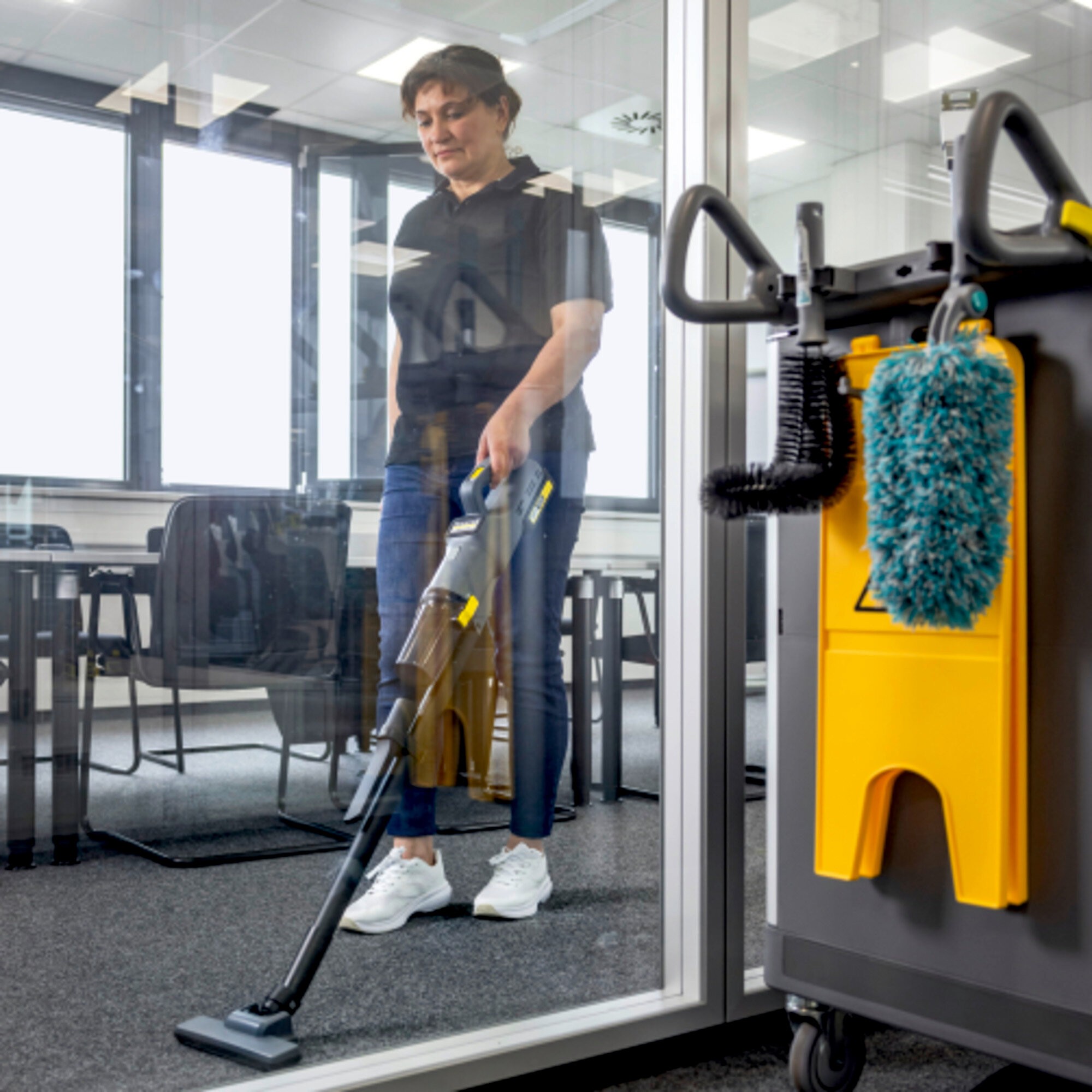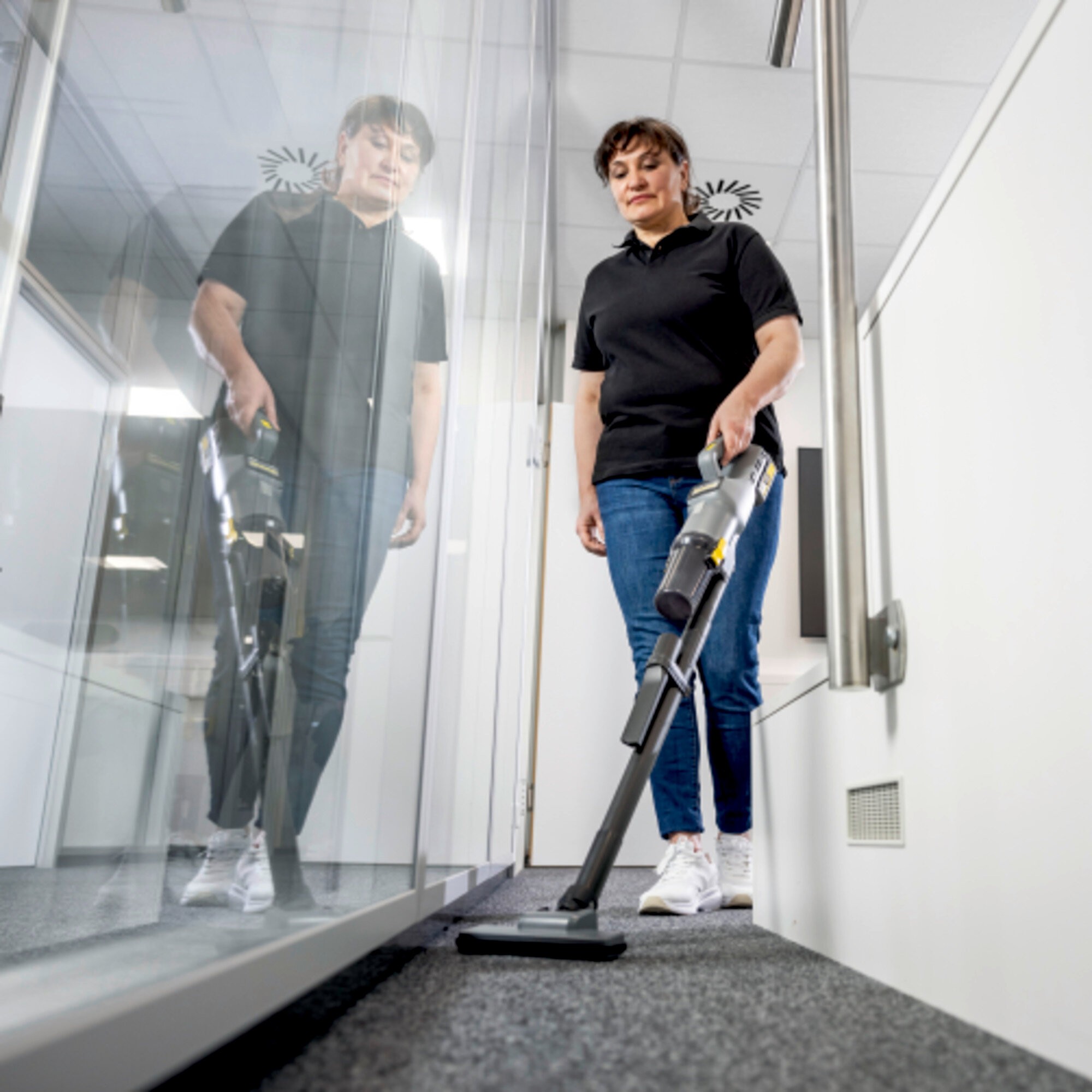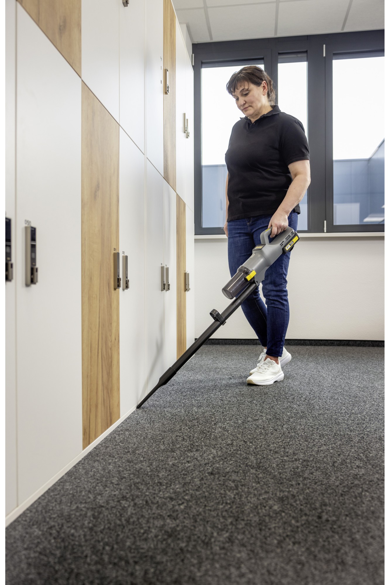 El robusto aspirador en seco a batería LVS 1/1 Bp ofrece una extraordinaria potencia de aspiración y elimina eficazmente el polvo y la suciedad. La tecnología de filtros ciclónicos de Kärcher garantiza una potencia de aspiración constantemente elevada. Inalámbrico, compacto y manejable, el aspirador es ideal para la limpieza de suciedad puntual en los sectores de la hostelería, la restauración, el comercio minorista y la limpieza de edificios. Gracias a su libertad de movimiento sin restricciones, también es perfecta para la limpieza de escaleras. El filtro HEPA 13 integrado garantiza el máximo nivel de higiene. La potencia de aspiración puede ajustarse en 3 niveles y, en unos pocos pasos, el aspirador de suelo puede transformarse en un aspirador de mano para tapicerías y superficies diversas. El depósito para la suciedad no requiere bolsas de filtro, ahorra costes y es sostenible. Puede vaciarse de forma rápida e higiénica, sin entrar en contacto directo con la suciedad. Con las potentes baterías de 18 voltios de Kärcher, el aspirador consigue excelentes resultados de limpieza. Un práctico soporte permite tener siempre a mano la boquilla para ranuras suministrada. Nota: la batería y el cargador rápido no están incluidos en el equipo de serie y deben pedirse por separado. Se encuentra disponible opcionalmente una amplia selección de boquillas y accesorios (DN 35).