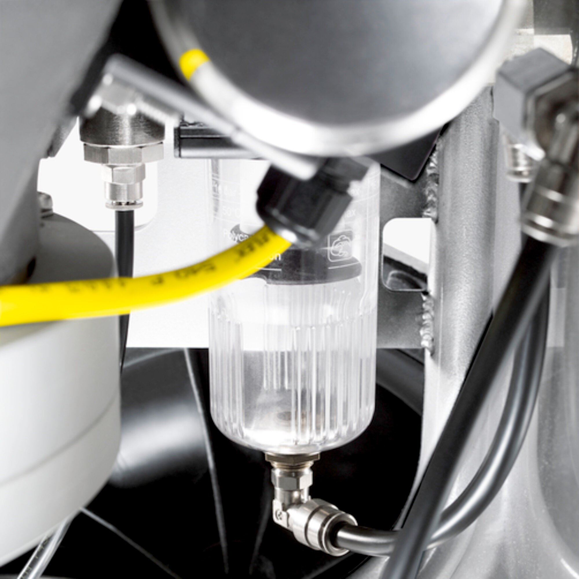 Un sofisticado concepto, numerosos detalles inteligentes, larga vida útil y un acabado de alta calidad caracterizan a nuestro Ice Blaster IB 7/40 Advanced. El pulverizador de hielo seco de última generación está diseñado para un uso continuo exigente con un equipamiento superior. Dispone de serie de un enrollador del cable de puesta a tierra integrado, vaciado de hielo restante que evita la congelación del equipo una vez finalizado el trabajo, y un separador de aceite y agua para un funcionamiento seguro. La conducción del aire está optimizada de tal forma que incluso con bajas presiones y reducido consumo de aire (máx. 3,5 m³/min) se consiguen muy buenos resultados de limpieza, reduciendo a su vez al mínimo los ruidos de funcionamiento. Varios elementos aseguran un elevado confort de trabajo: la pistola pulverizadora con control remoto integrado para el ajuste de los parámetros de chorro, la regulación continua de la presión del chorro y del volumen de hielo mediante un pulsador (desconectable si se desea) y un cómodo display para la lectura de todos los parámetros de servicio. Además, es posible consultar valores estadísticos como tiempo de servicio, consumo medio de hielo por hora o consumo de hielo total.