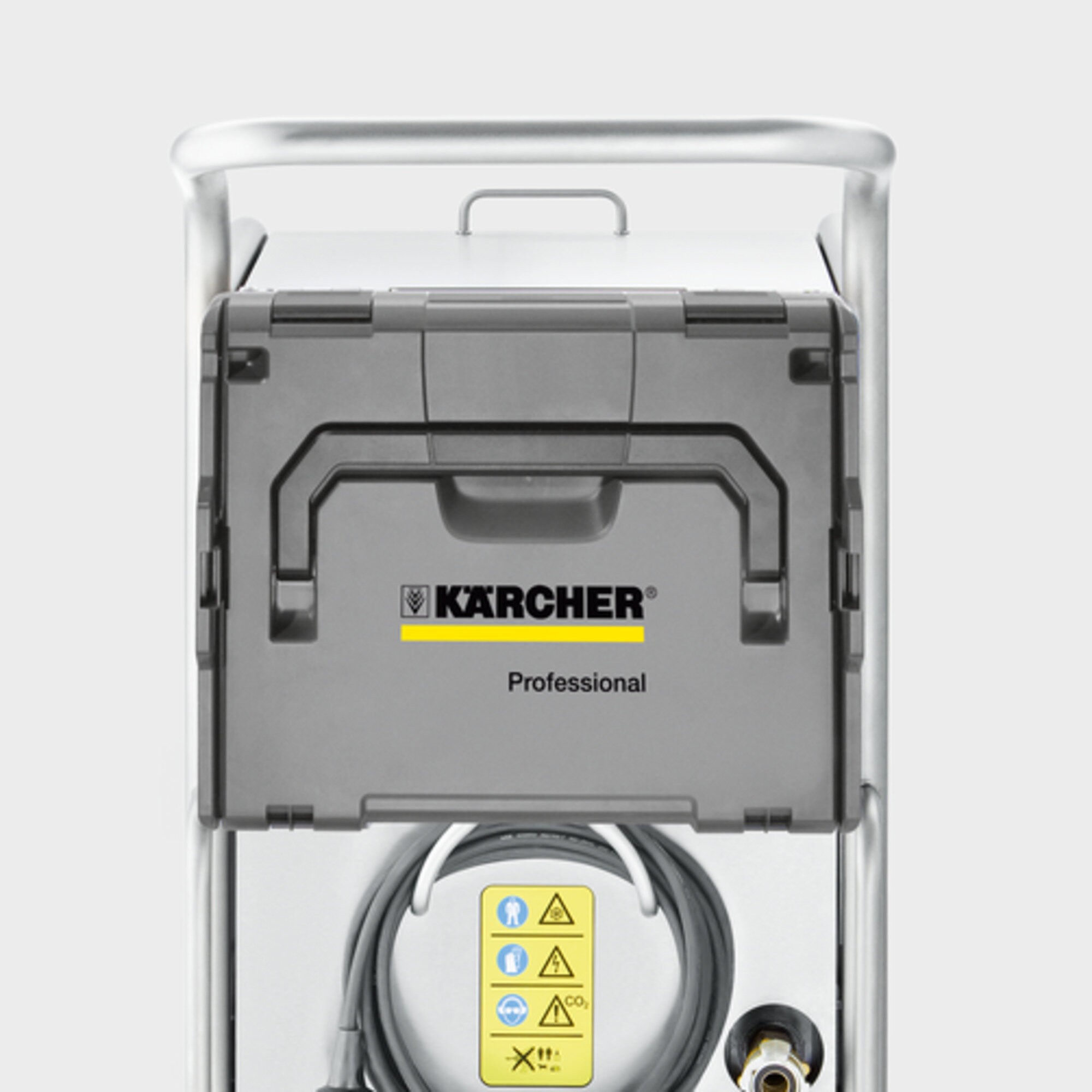 El nuevo inyector de hielo seco IB 15/120 es potente, resistente y muy fiable. Asimismo, las diversas soluciones inteligentes, como el soporte para la maleta, el vaciado de hielo, la horquilla de retención y los compartimentos, reafirman la impresión positiva general, aumentan el confort de funcionamiento y contribuyen a que la limpieza con hielo seco resulte más agradable. También en el aspecto técnico la solución cuida todos los detalles. De hecho, se han mejorado considerablemente tanto el caudal de aire del equipo como la manguera, la pistola y la boquilla. El resultado: un rendimiento de limpieza extraordinario. A pesar de su tamaño, el IB 15/120 es muy ágil y puede ser manejado sin problemas por una sola persona, por ejemplo, al subir y bajar escalones. En definitiva: ¡la pulverización con hielo seco en estado puro!