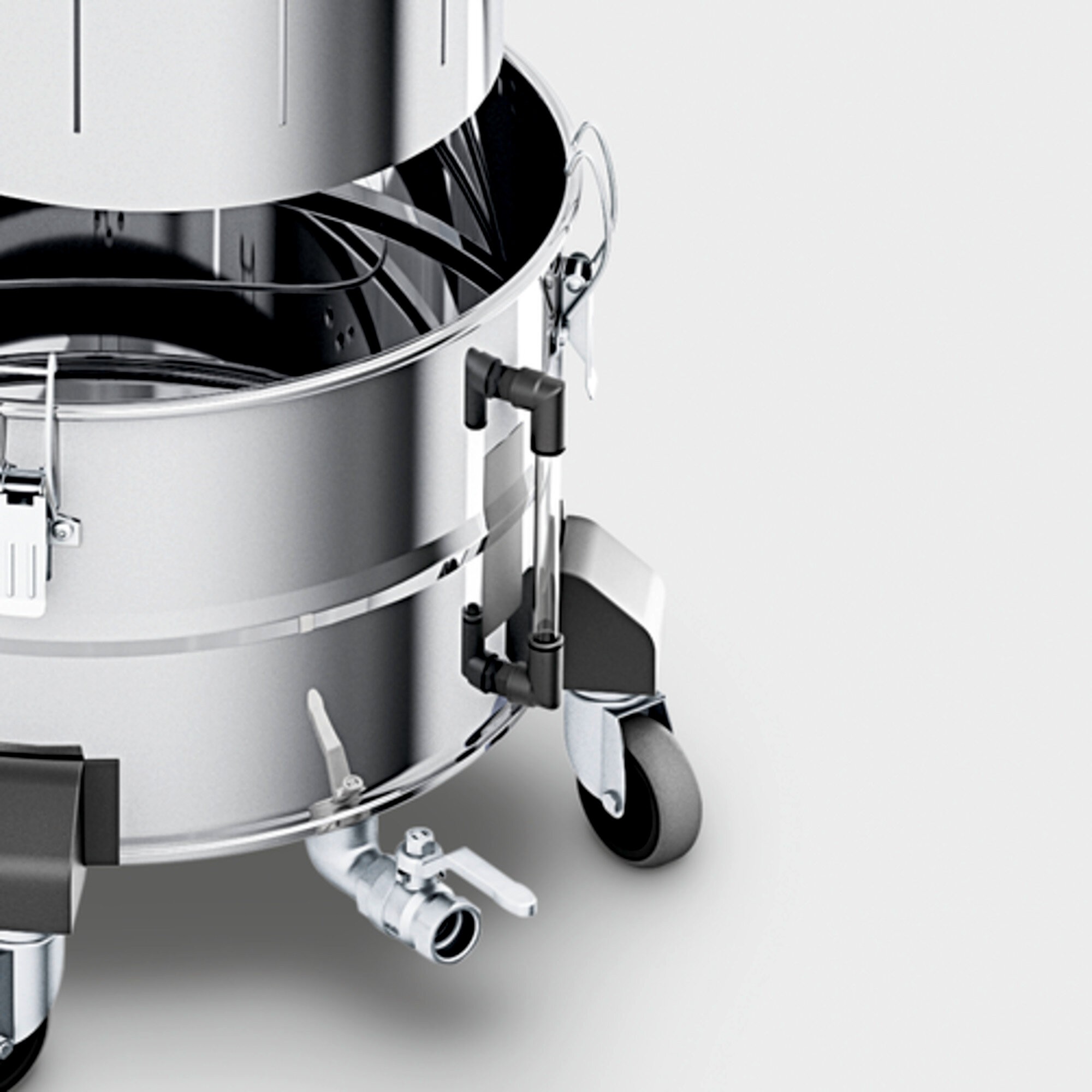 Compacto, seguro y sencillo: el aspirador industrial de gama media IVM 60/12-1 M ACD WS de un motor es perfecto para la aspiración de polvo fino que requiere inertización, de aluminio, titanio y magnesio. El equipo con turbina de alto rendimiento, compacto y fiable, dispone de un gran filtro en estrella de la categoría de polvo M, que puede limpiarse fácil y cómodamente con el sistema de limpieza del filtro Pull and Clean, sin necesidad de apagar el aspirador. Además, el depósito colector incluye un tamiz. Todas las partículas aspiradas quedan empapadas por completo por el líquido inhibidor y son conducidas a presión. El nivel de llenado del líquido inhibidor puede determinarse en cualquier momento mediante una mirilla. Al desconectarse la potencia de aspiración cuando el nivel de líquido inhibidor es reducido, se evitan los errores de manejo. El vaciado del líquido se realiza mediante una válvula de bola.