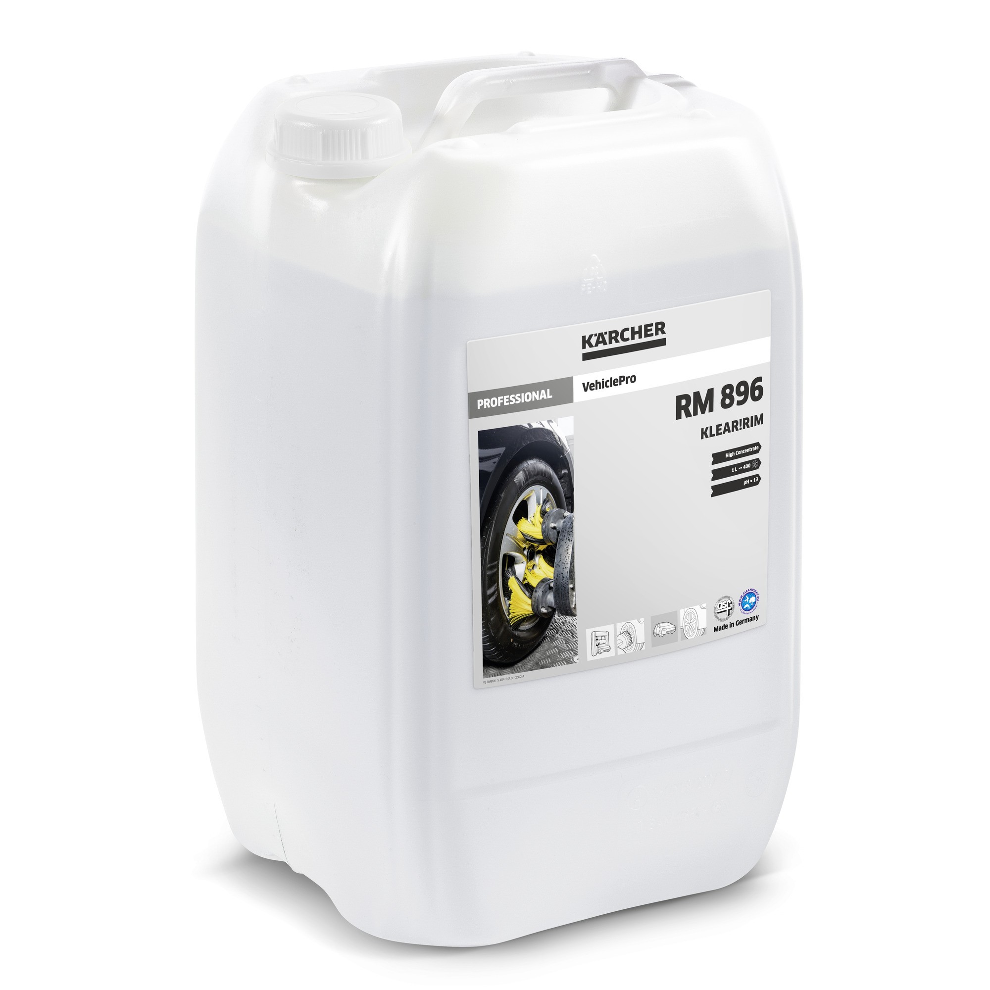VehiclePro Klear!Rim RM 896 es el limpiador de llantas premium de Kärcher para eliminar sin esfuerzo la suciedad más persistente al lavar vehículos. Adecuado para su uso en instalaciones de lavado de vehículos, el limpiador altamente concentrado de la gama Klear! de Kärcher elimina los residuos de las pastillas de freno y del desgaste de los neumáticos, así como la cal y la sal de deshielo de forma rápida, fiable y altamente eficaz. Este producto de primera calidad, delicado con los materiales, no daña los revestimientos de las llantas de aluminio y acero, los suelos de hormigón sin revestir ni las cavidades de las ruedas de acero. Además, VehiclePro Klear!Rim RM 896 es muy económico, con un rendimiento de limpieza de unas 400 llantas por litro, y es biodegradable en más de un 90 % (tensioactivos conforme a ECC 648/2004).