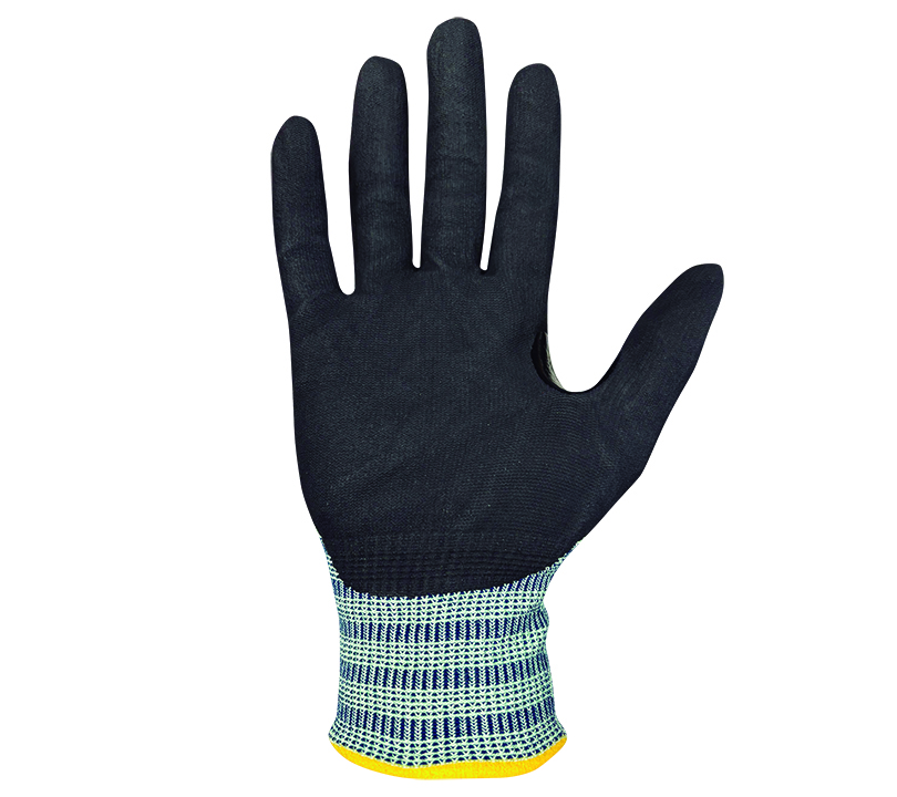 Guantes sin costuras con alta resistencia al corte que incorpora la fibra K-rock® con poliéster reciclado recubierto de nitrilo micro foam en la palma.Características